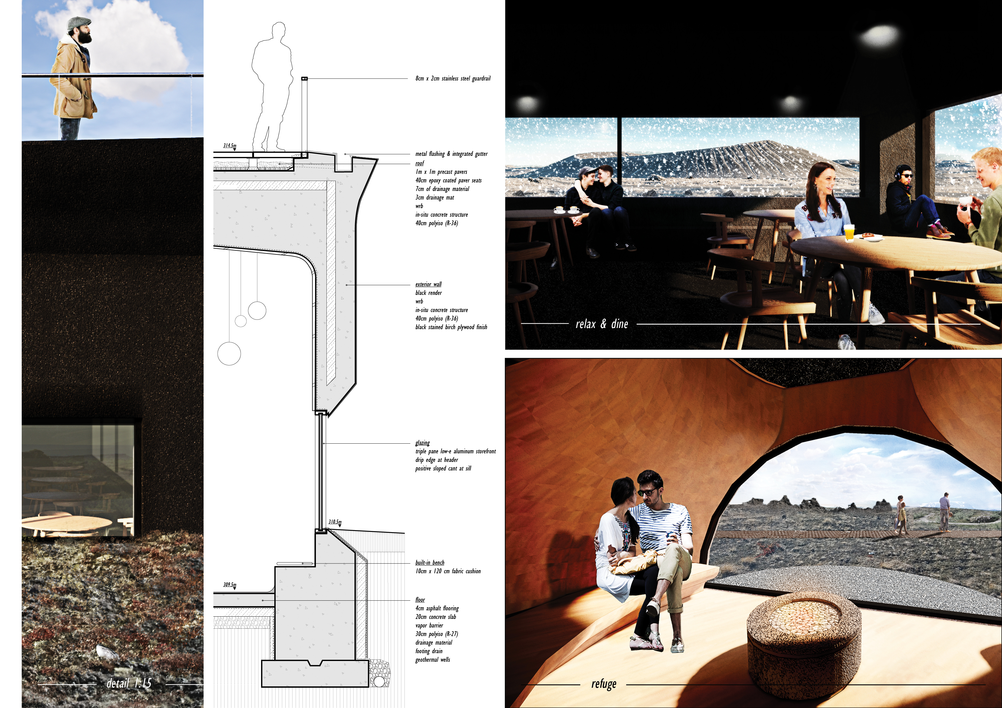 Dimmuborgir is a dramatic volcanic site that demonstrates a unique part of Iceland’s spectacular geological history. The Hverfjall’ volcano power is evident in the vast fields of dark, irregular rocks that put man’s scale into geological perspective. The Black Lava Fields Visitor Center creates atmospheres that heighten our sensory awareness of this natural wonder by directing and framing the visitors’ views of the Dimmuborgir lava field and Hverfjall. “The Visitor Center” is a vessel that allows these singular experiences to unfold gradually as each person circulates the building, and especially when they emerge from it and enter the expansive volcanic landscape on foot.
