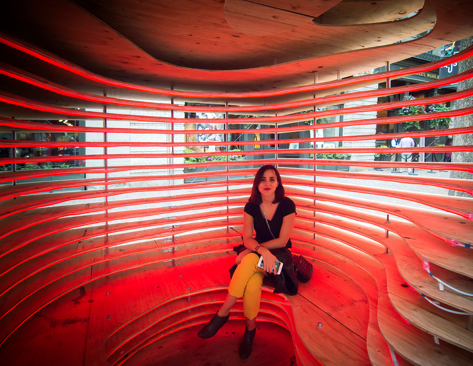 OPENhouse is a gathering space that invites the public to engage within an intimate and semi-transparent temporary shelter in downtown Seattle. The team created OPENhouse as an installation that challenges notions of spatial privacy and provokes conversation about trust and perception through manipulating the vernacular house form. This project was initiated by a small group of NAC staff interested in producing an installation addressing the Seattle Design Festival’s theme of ”Trust”.