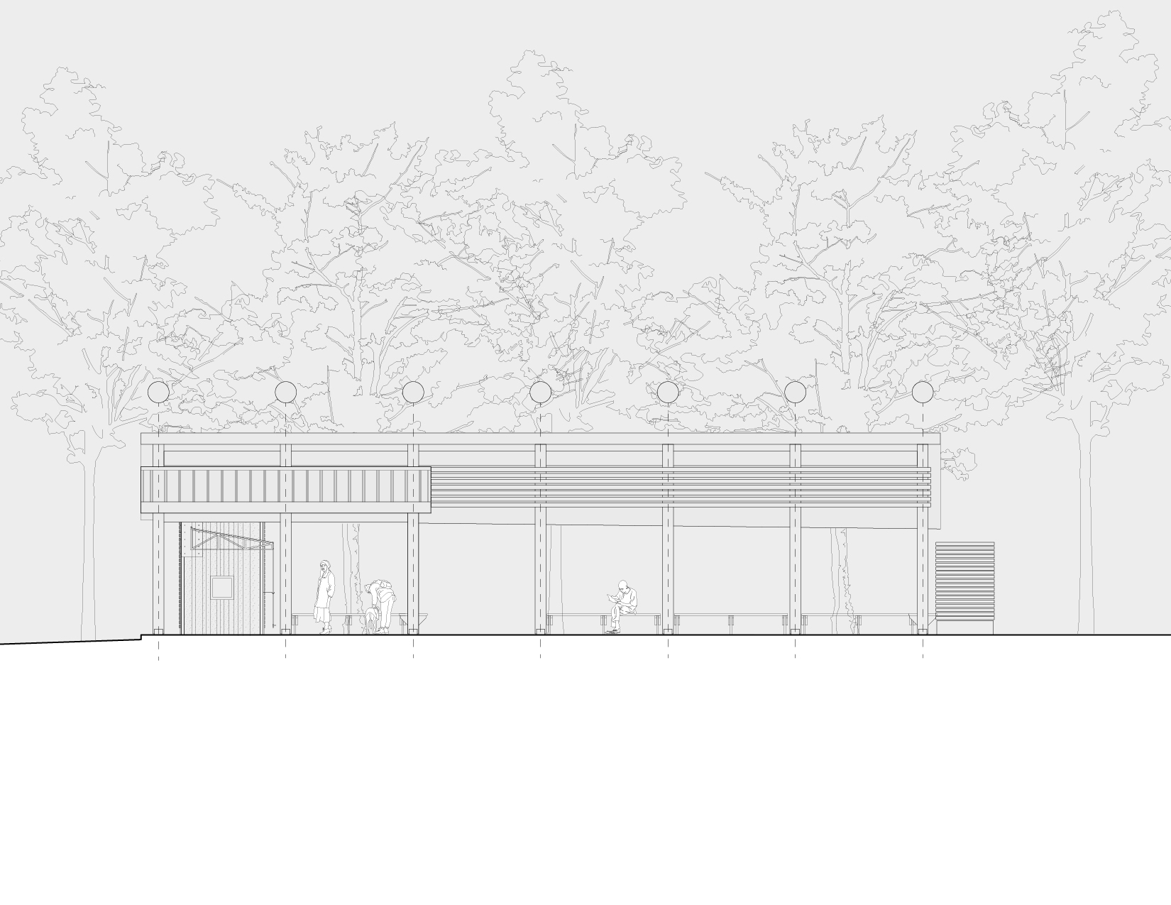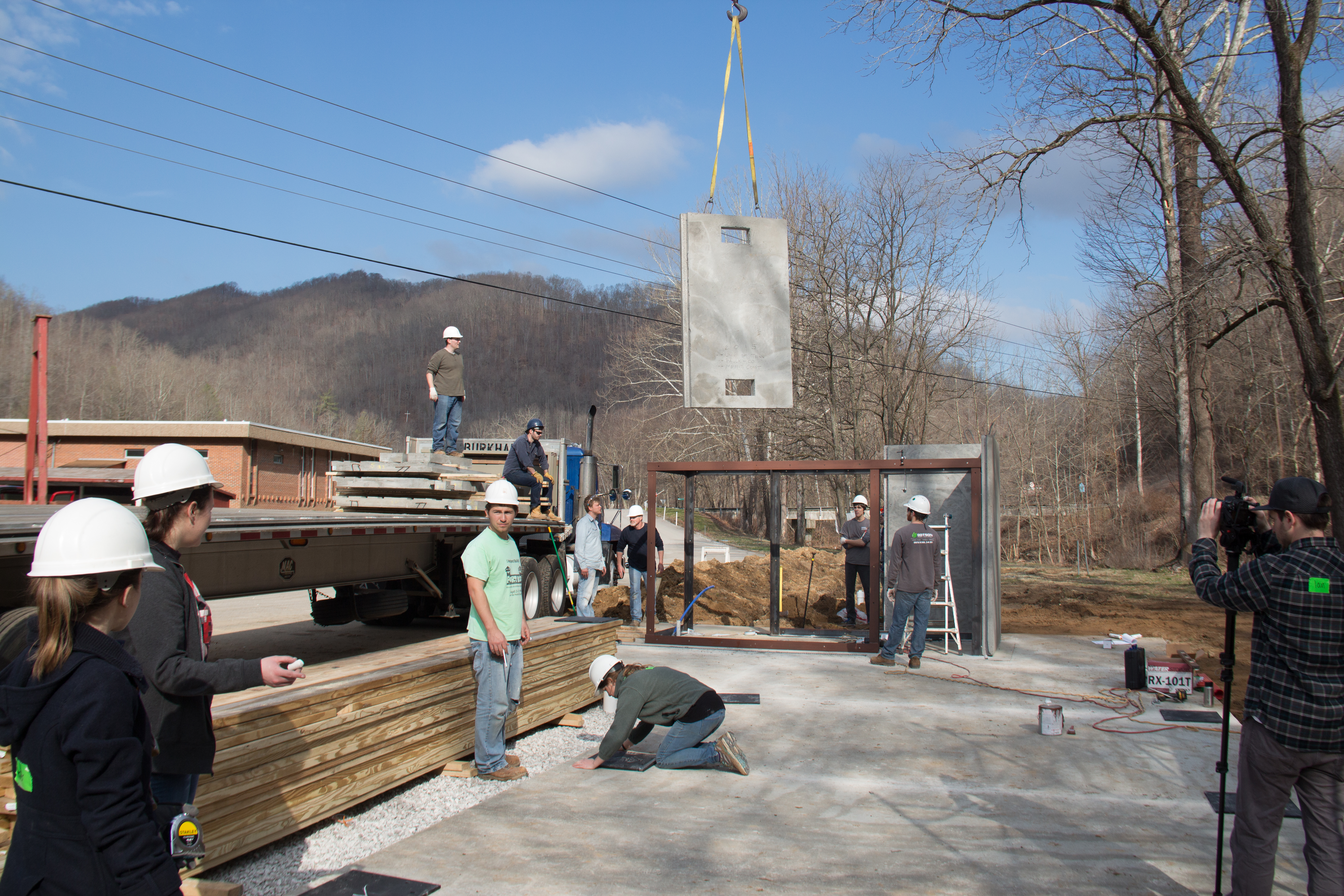 This social infrastructure supports a community in Appalachia that has been ravaged by the containments of coal mining for years. The structure contains two water dispensers, a covered space for flexible gathering, and a cistern for rainwater collection to water the adjacent greenhouse. The final selected scheme was designed and fabricated over 3 months and erected during one week in the of spring 2015.